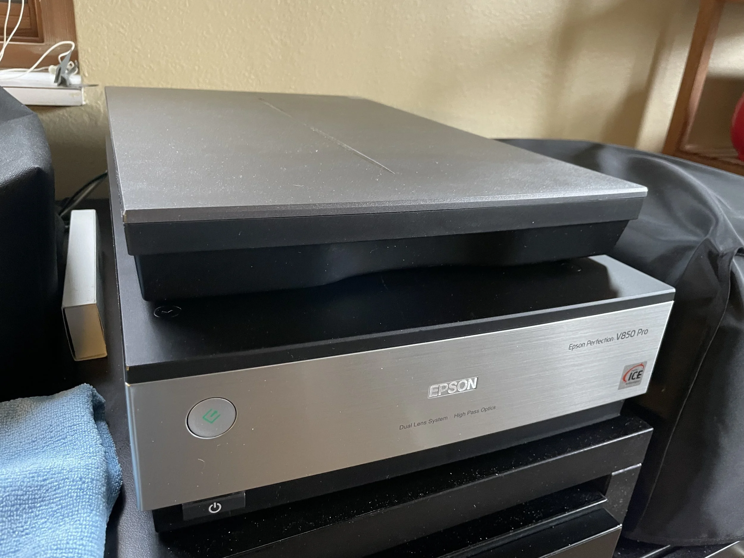 Pacific Image PowerSlideX allows for bulk scanning. Though not speed scanning, it allows us to batch scan fifty slides at one time. We can also scan damaged or bent slides using the Epson flatbed scanner.